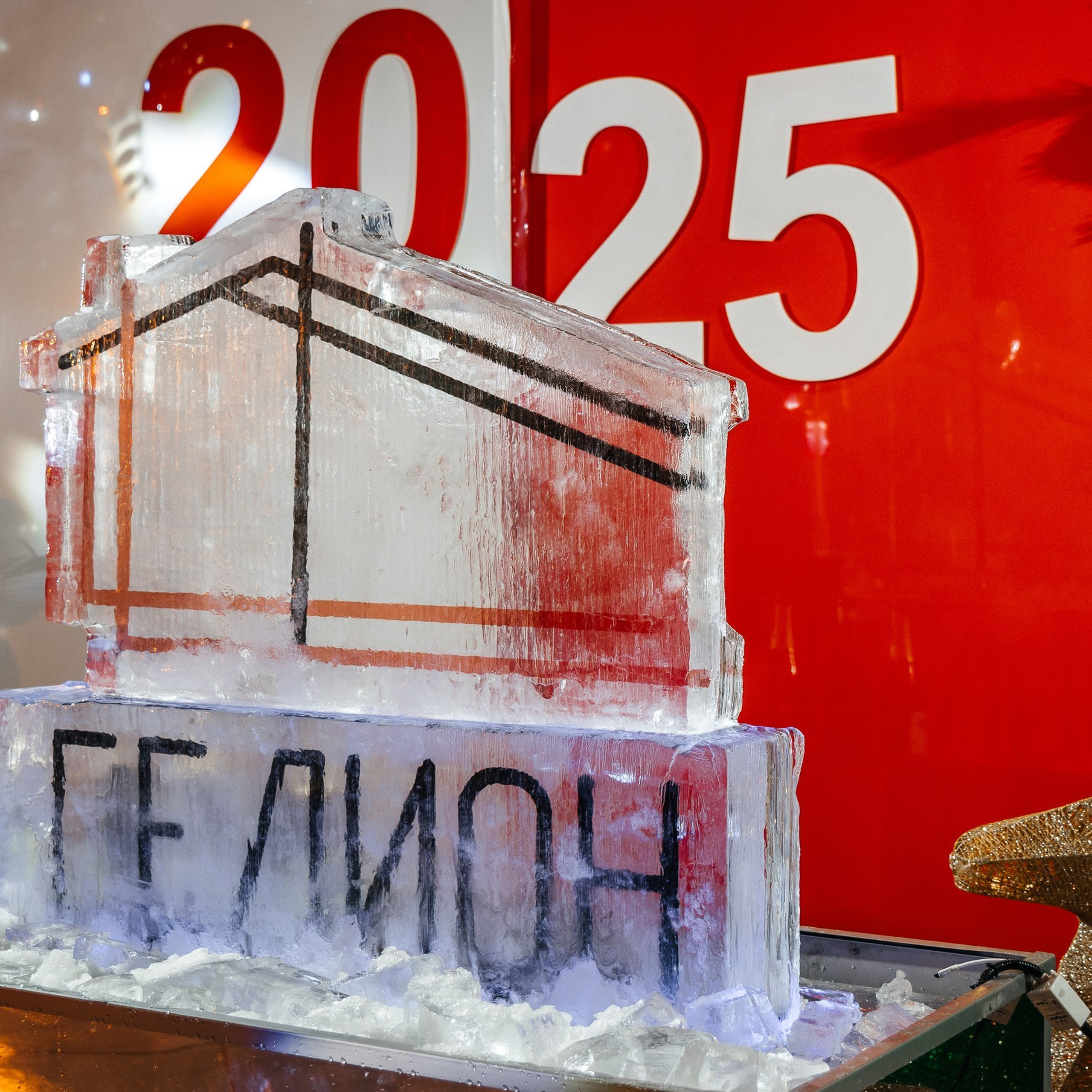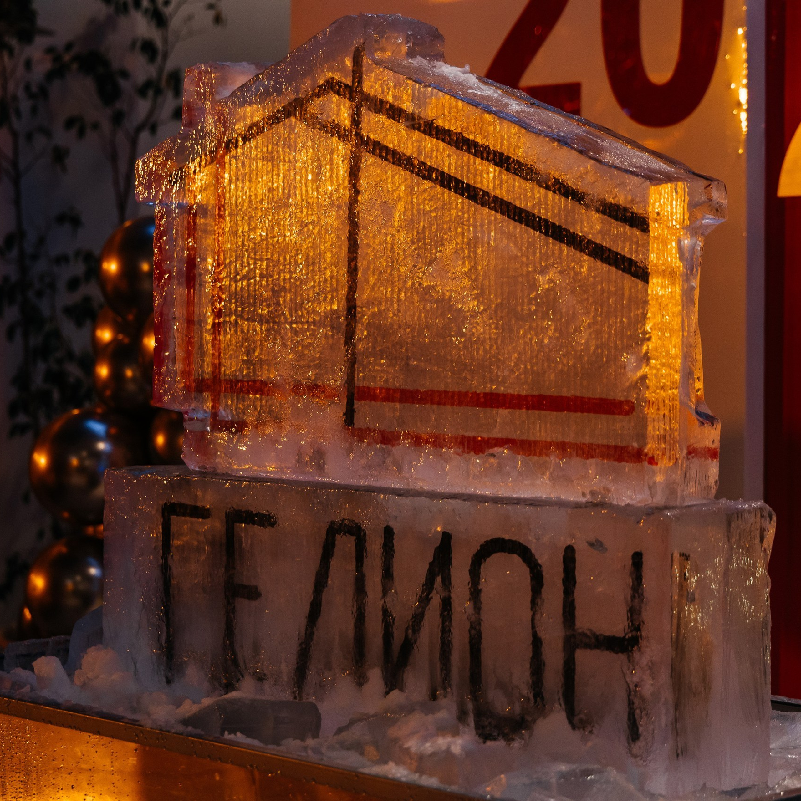 Кульминация вечера — создание ледяной скульптуры с логотипом «Гелион». Мастера прямо на глазах у гостей с ювелирной точностью выпилили фигуру «Гелион» изо льда, а затем по её контуру эффектно прошелся огнём.