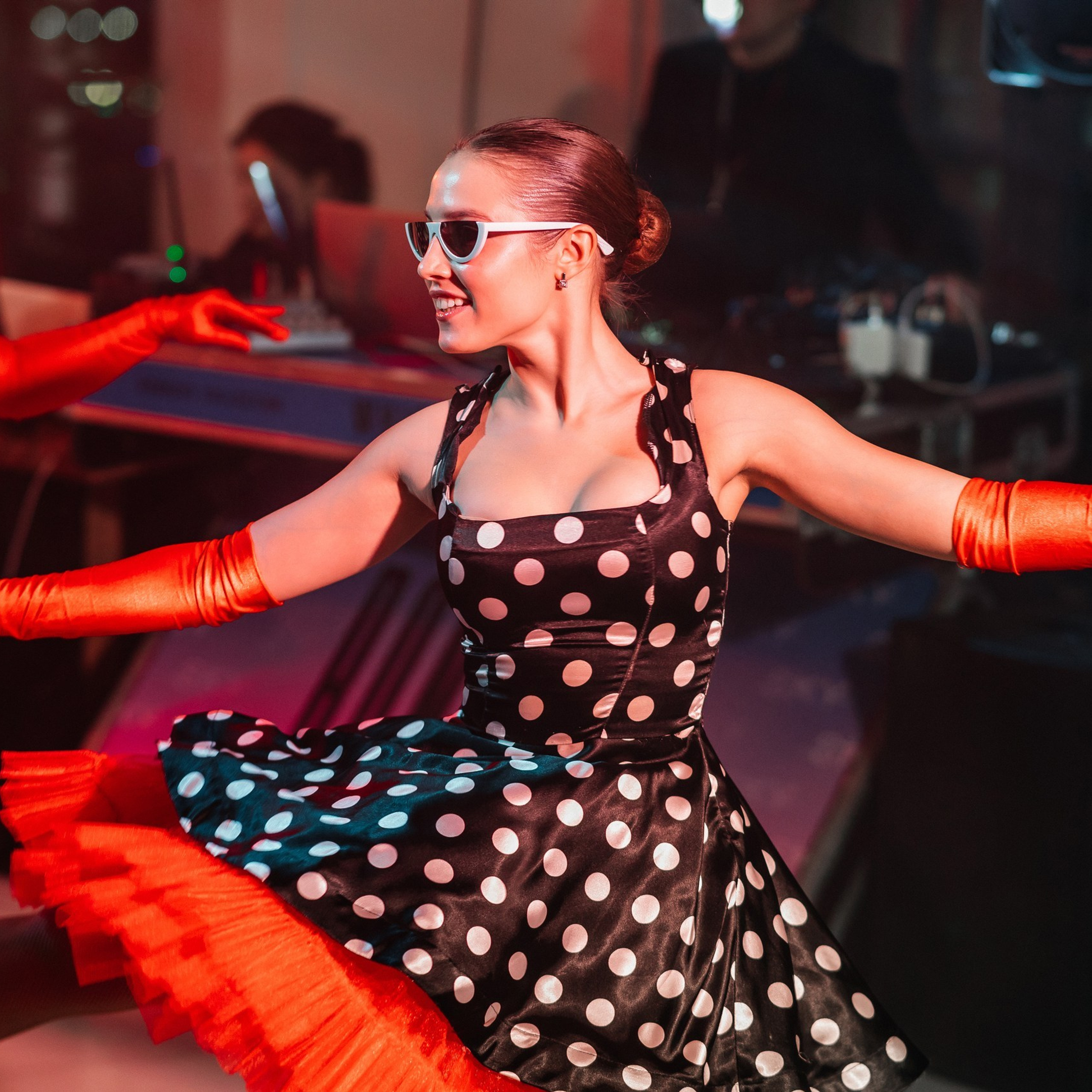 Видеоспиннер подарил каждому шанс стать звездой танцпола: гости кружились под музыку, а камера фиксировала эффектные моменты в формате кругового видео. Получались мини клипы, которыми все тут же делились в чатах.